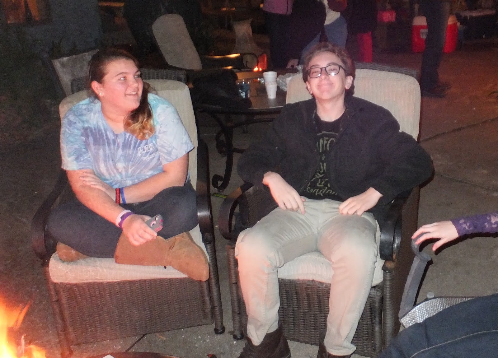 Upon arrival at the camp site, all sixteen scruffy men set up their camp sites and built a big fire. Stephen, Davis, and Lawson set up their tent, complete with hot tub, miniature golf course, and cocktail lounge:
